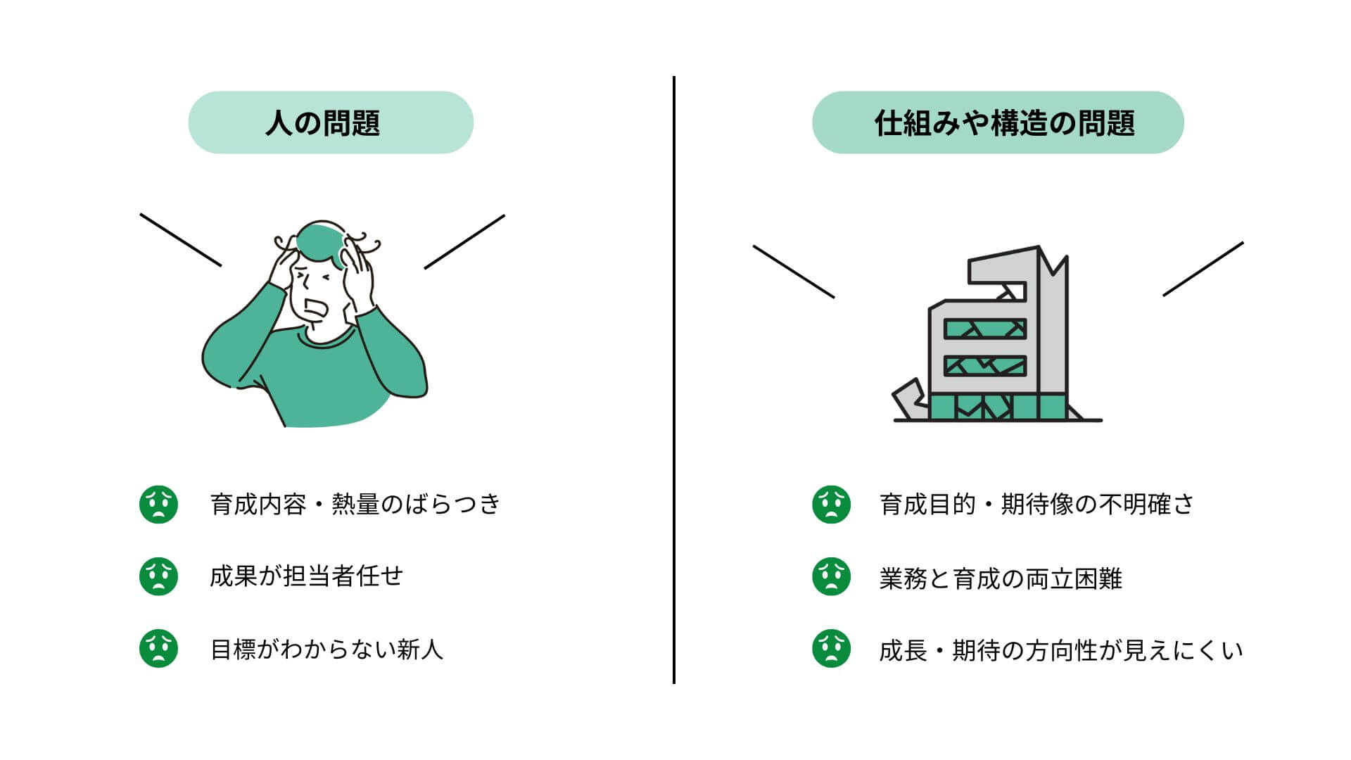 つまり、新人育成が進まない背景には「人のやる気」だけではなく、“仕組みと環境の整え方”そのものに課題が隠れているのです。