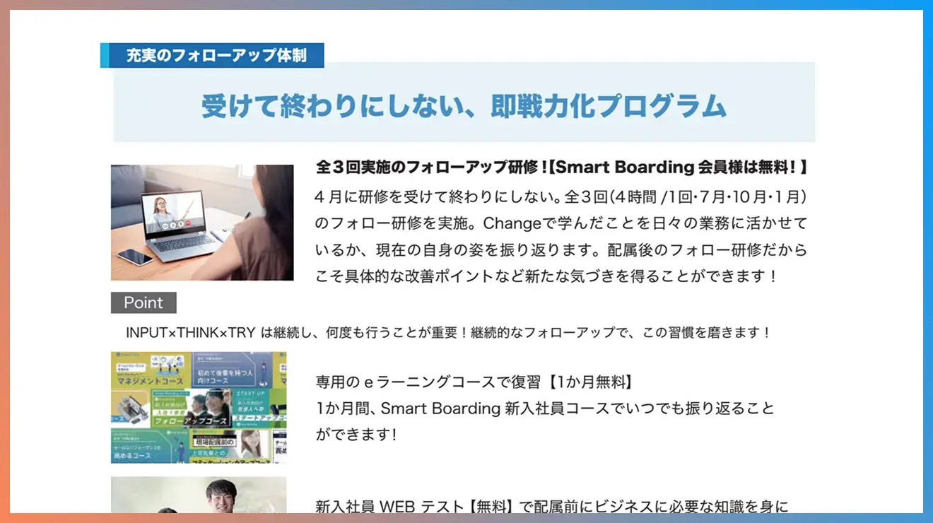 ”OJTも研修もe-ラーニングも” 組織成長に必要な社員教育を実現する人財育成プラットフォームSmart Boardingについて